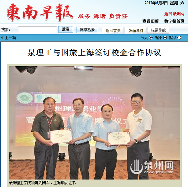 • 【东南早报】泉理工与国旅上海签订校企合作协议
