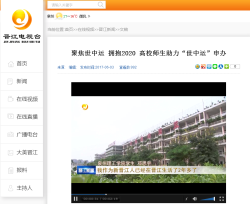• 【晋江电视台】聚焦世中运 拥抱2020 高校师生助力“世中运”申办
