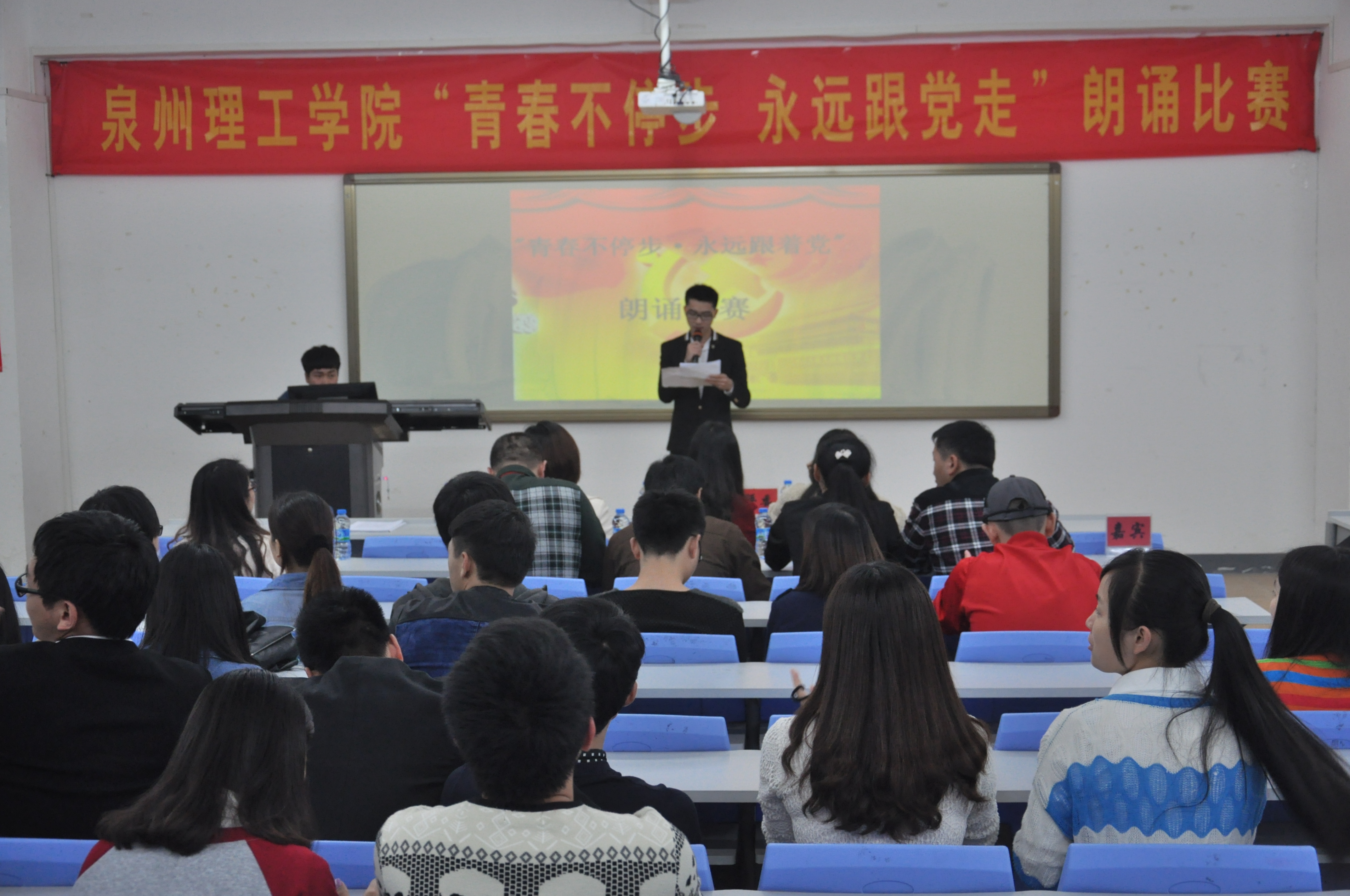 朗诵现场 学生风采 “我骄傲我是中国人......”5月7日晚上19:00,学校238教室不时传来这样铿锵有力的声音,由校团委主办,校学生会承办的“青春不停步·永远跟党走”朗诵比赛在此举行。学工处处长...
