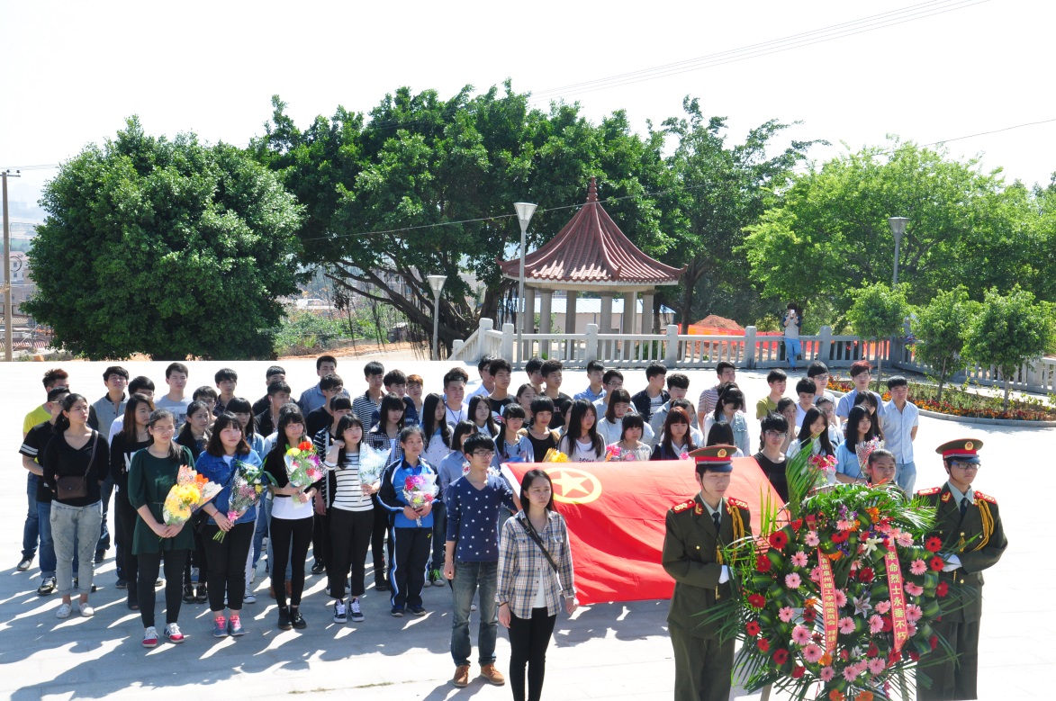 国旗班同学为先烈送上花圈 “桃花红雨英雄血,碧海丹霞志士心。今日神州看奋起,陵园千古慰忠魂”。 为引导全校师生在慎终追远、缅怀先烈的情怀,增进爱党、爱国、爱社会主义的情感,营造文明和...