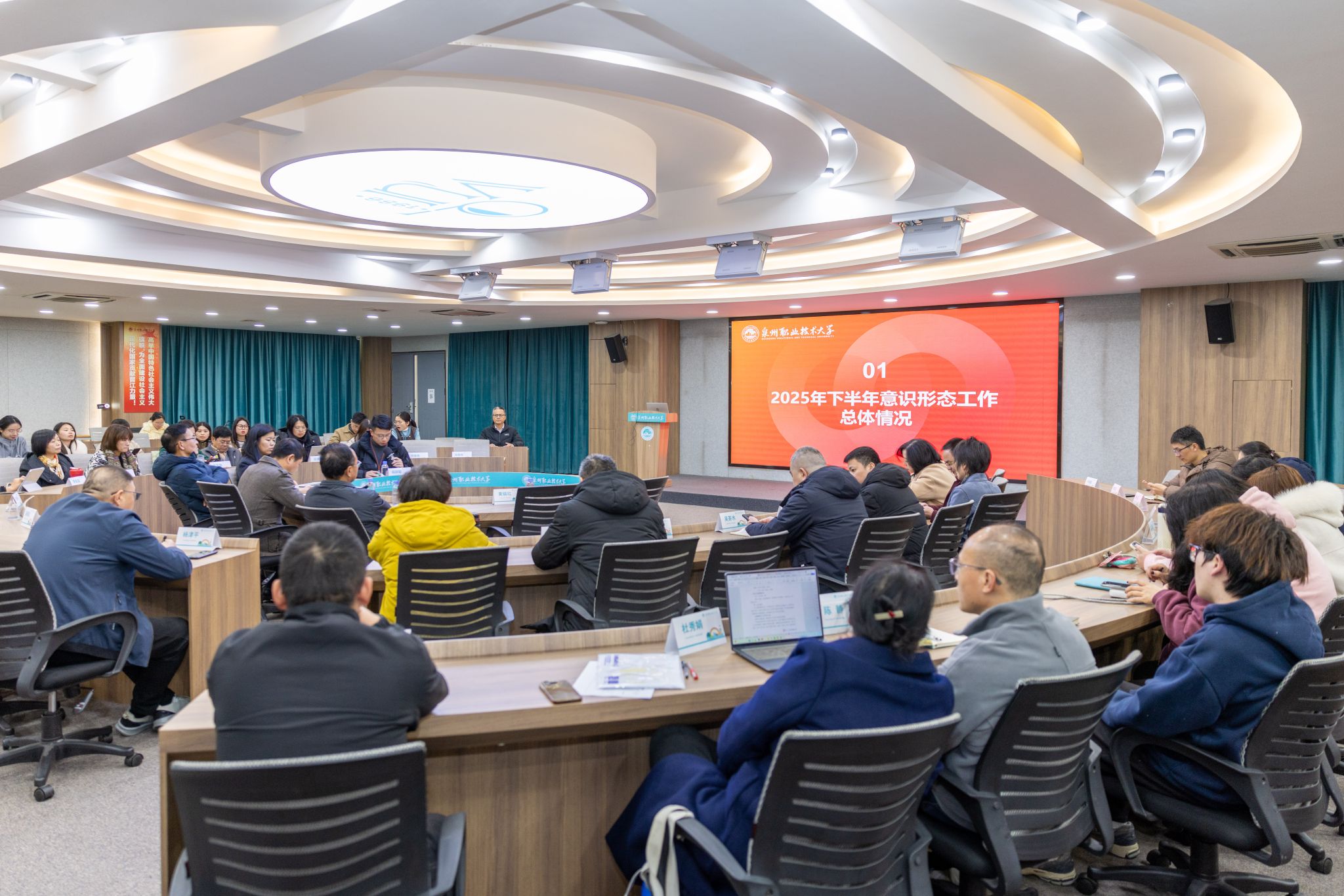 12月26日下午,我校在A301国际会议厅召开2025年下半年意识形态工作分析研判会。校党委副书记、副校长蔡金佩,校务顾问吴建生等校领导,各部门、学院、书院负责人及各部门通讯员等参加会议。会上,党委宣传部部长杨颖聪全面总结2025年下半年学校意识形态领域工作情况,指出下半年学校意识形态态势总体平稳向好,在党建引领、思想引领与文化育人等方面取得积极进展。学校成功入选国家“双高计划”,主动服务国家战略,举办多项重...