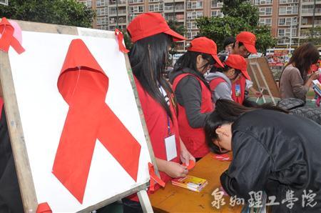 图为学生将写好的祝福卡片系在红绳上 昨天是第23个“世界艾滋病日”,我校青年志愿者协会在校篮球场开展以“青春红丝带,关心你我他”为主题的艾滋病宣传活动,吸引了广大师生的积极参与。 一条条代表...