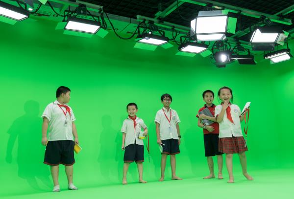 小记者们在虚拟演播厅里做着明星梦