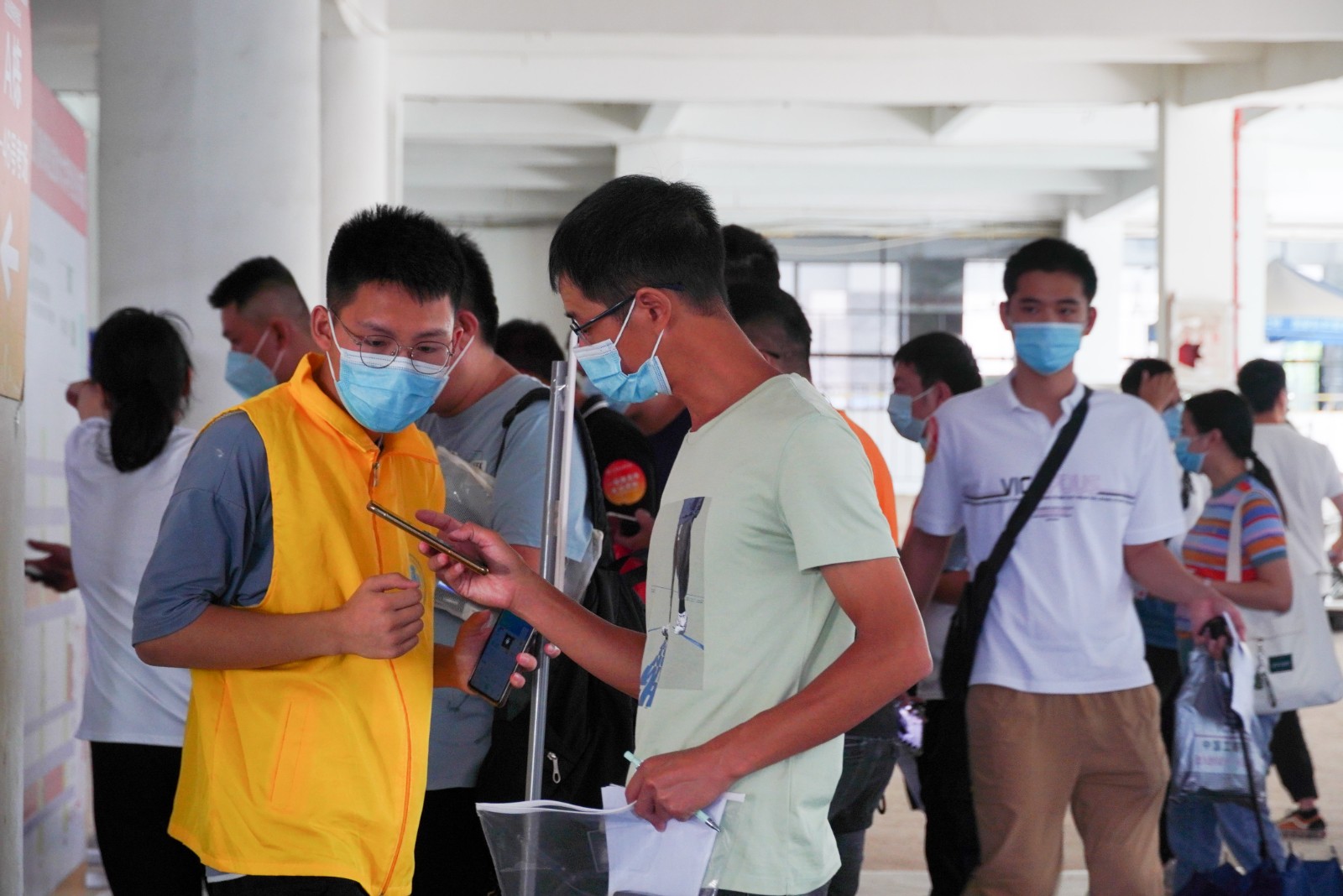 考试当天,考区严格按照进场亮码测温、佩戴口罩、查验身份证、准考证等程序规范,在各考点均配足防疫物资,设置专用防疫特殊通道及临时隔离考场,确保疫情防控各项措施落实到位。11日那天,也恰逢是新生报到的时间,为更好的服务考生,我们为考生设计了专属的袖贴,凭此都可向志愿者寻求帮助。