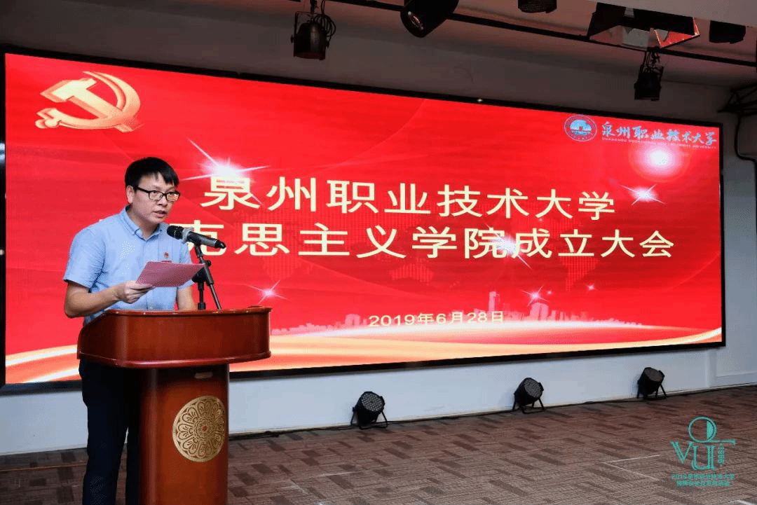 庄文瑞副校长宣读成立泉州职业技术大学马克思主义学院文件