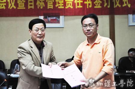 4月 19日下午,泉州理工学院召开 2011年安全稳定会议暨目标管理责任书签订仪式,学校与17个二级单位“一把手”签订安全目标管理责任书,通过一系列措施打造平安校园。