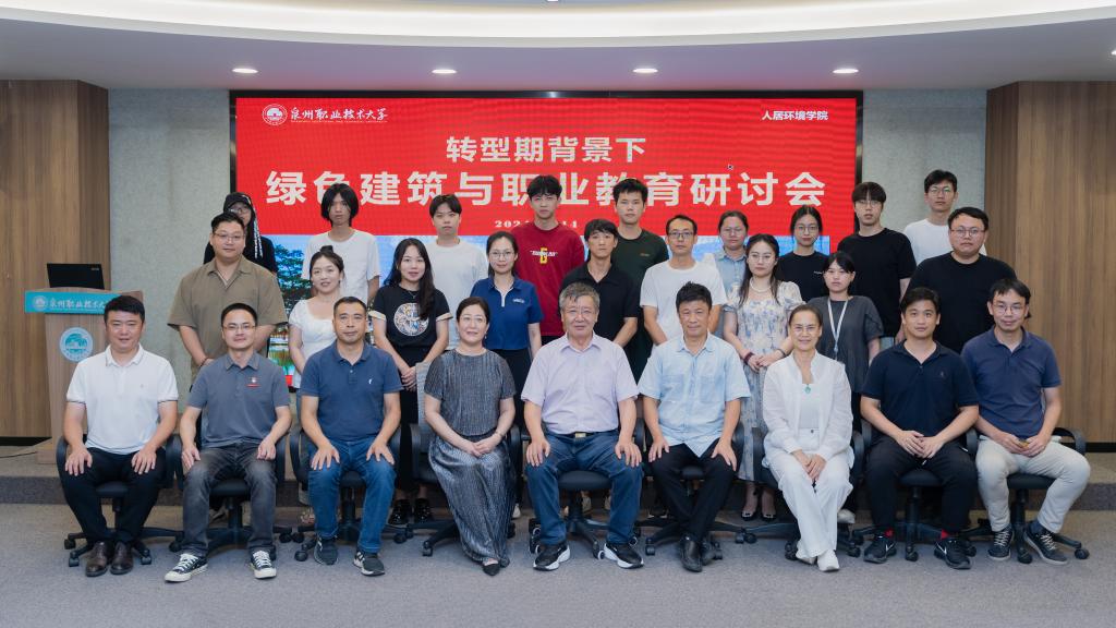 8月14日下午,泉州职业技术大学举办“转型期背景下绿色建筑与职业教育”研讨会。会议特邀天津大学建筑学院原书记、澳门城市大学博士生导师张玉坤教授,福州大学建筑学院副院长、博士生导师林志森教授,黎明职业大学土木建筑工程学院丁瑜鸿教授等嘉宾。泉州职业技术大学党委书记傅志雄,科研处处长任莉娟,人居环境学院院长关瑞明、书记兼副院长张艺能、环境艺术设计专业带头人陈力、环境艺术设计专业主任陈淼淼、建筑室内设计专业主任叶加根,以及相关专业教师和学生参加会议。