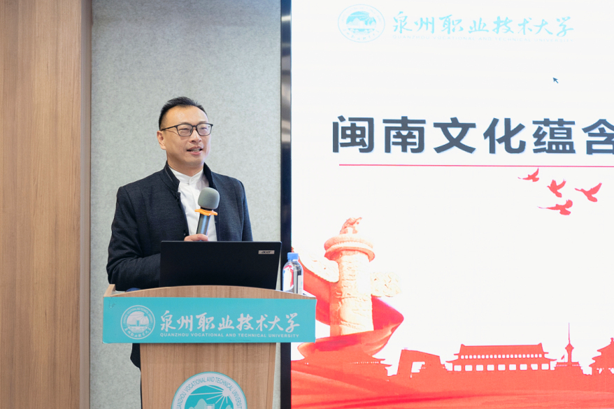 闽南文化中,不乏鲜明的爱国爱乡教育素材,可以引导和帮助当代大学生树立正确的人生观、价值观、世界观。吴主席从泉州传统文化的角度、用生动具体的历史事例来解读社会主义核心价值观,如泉州古城有关爱国主题的义全境、忠义境、执节境、通天境被全部保留下来并改为巷名, 鲤城坑头一户民宅楹联“永遵仁义居安宅,和睦乡邻见古风”,其横批“里仁为美”充分诠释泉州一句俗语“千银买厝、万银买厝边”。石狮万灯巷民宅镌刻的楹联“正和睦邻存厚绣,从严家规廉助次”,既巧妙嵌入屋主“正从、绣次”伉俪的名字,又让我们了解屋主的齐家之方。通过一个个文明之人、文明之家而构建出朱熹眼中“满街都是圣人”的文明社会。