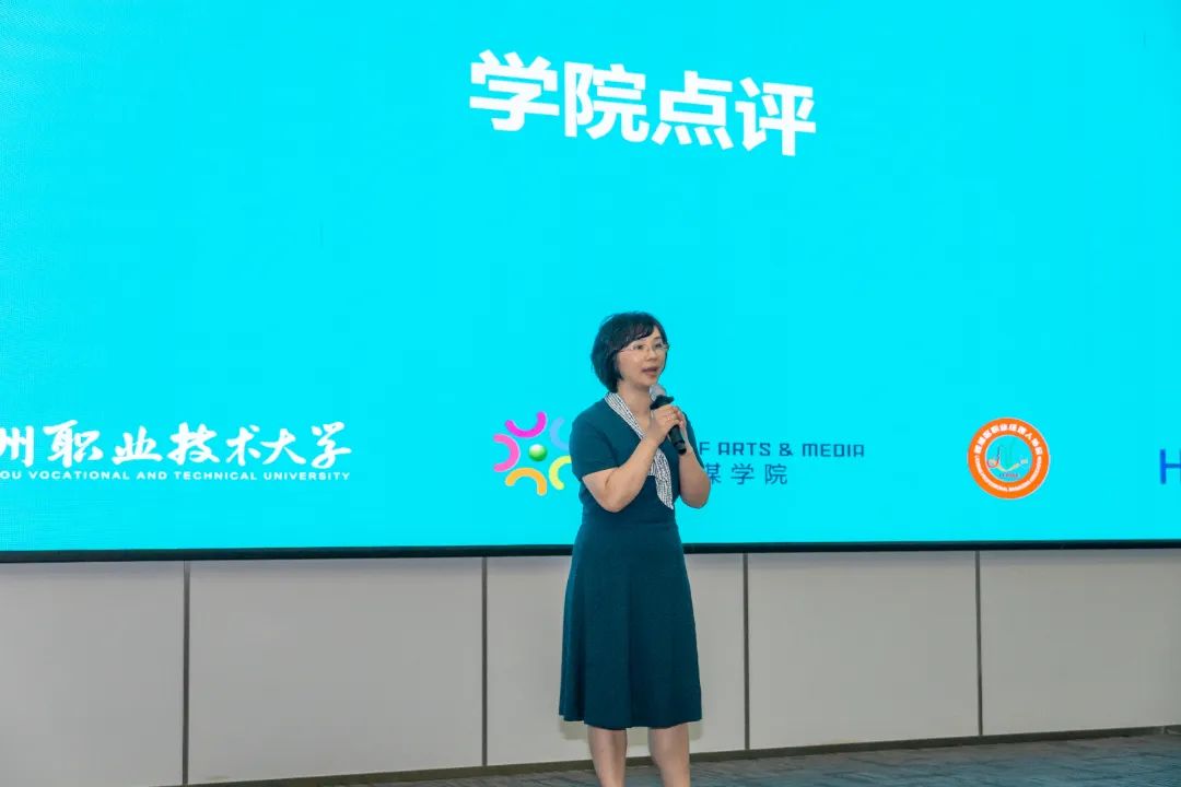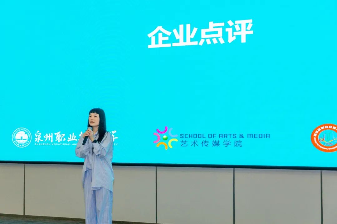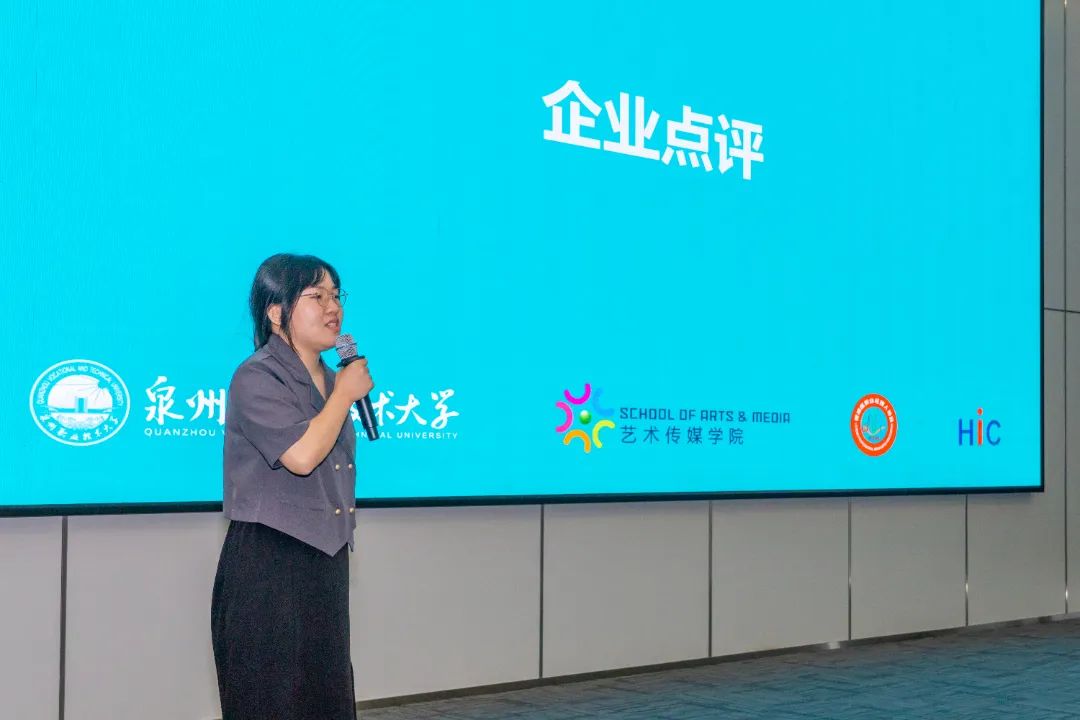 参加当天实训汇报会的有:泉州海新服装科技有限公司品牌总监黄雪胶、业务总监洪炳豪、海外市场业务总监梁妮,泉州职业技术大学艺术传媒学院书记涂永坚、服装与服饰设计专业主任李亚兰、服装与服饰设计专业营销方向教师杨子豪、学业辅导员钟荣。