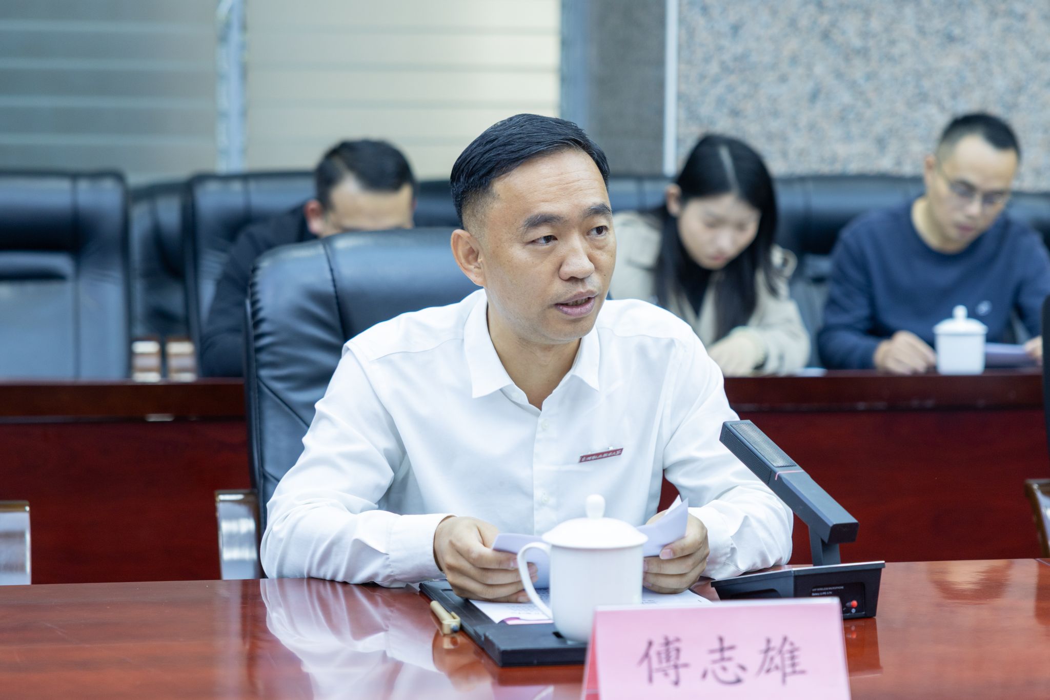 在随后举行的座谈会上,党委书记傅志雄代表学校对严可仕一行的到访表示热烈欢迎,系统汇报了我校统战工作的开展情况。严可仕在座谈中指出,民进与教育领域联系紧密,本次走访调研旨在发展高等教育界会员,设立民进基层组织,搭建资源平台,助力高校人才队伍建设与教育事业高质量发展。