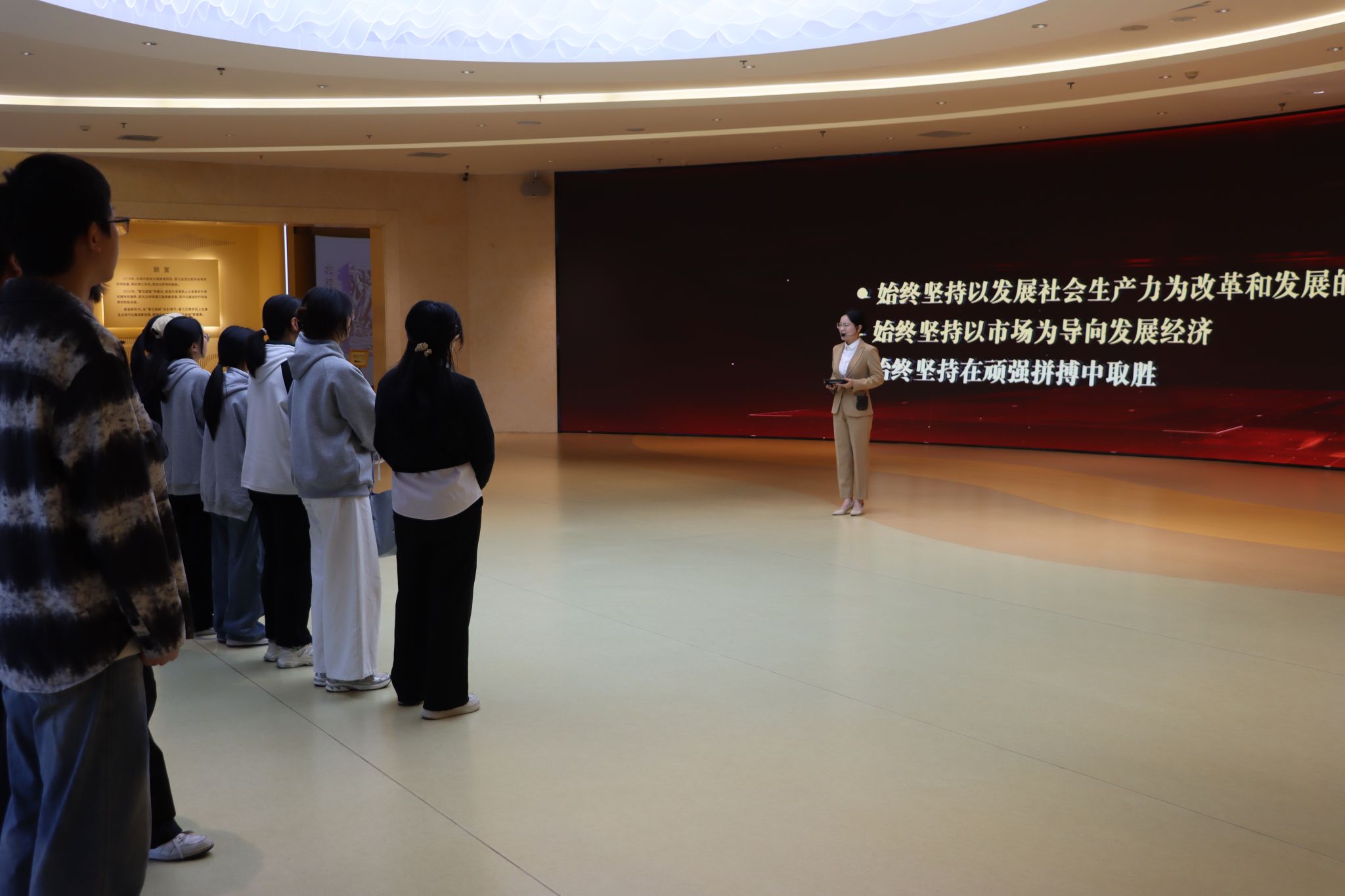 随后,在讲解员引导下,师生依次参观了“历史记忆”“大美晋江沙盘”“未来展望”等展区。通过丰富的历史资料、实物展品和数字化演示,师生深入了解了晋江从“三闲起步”到形成现代产业集群的奋斗历程,切身感受“爱拼敢赢、善拼会赢”的城市精神,深刻领会晋江坚守实体经济、推动高质量发展的实践路径。