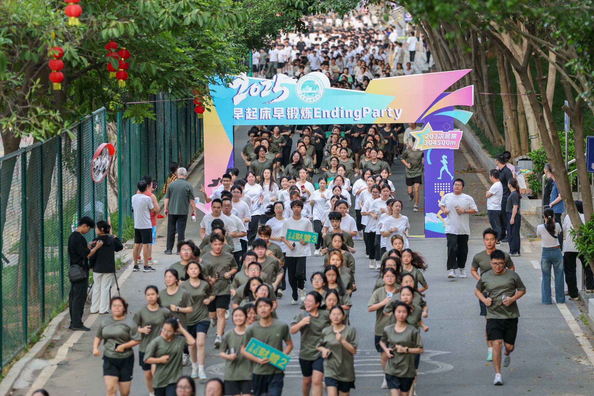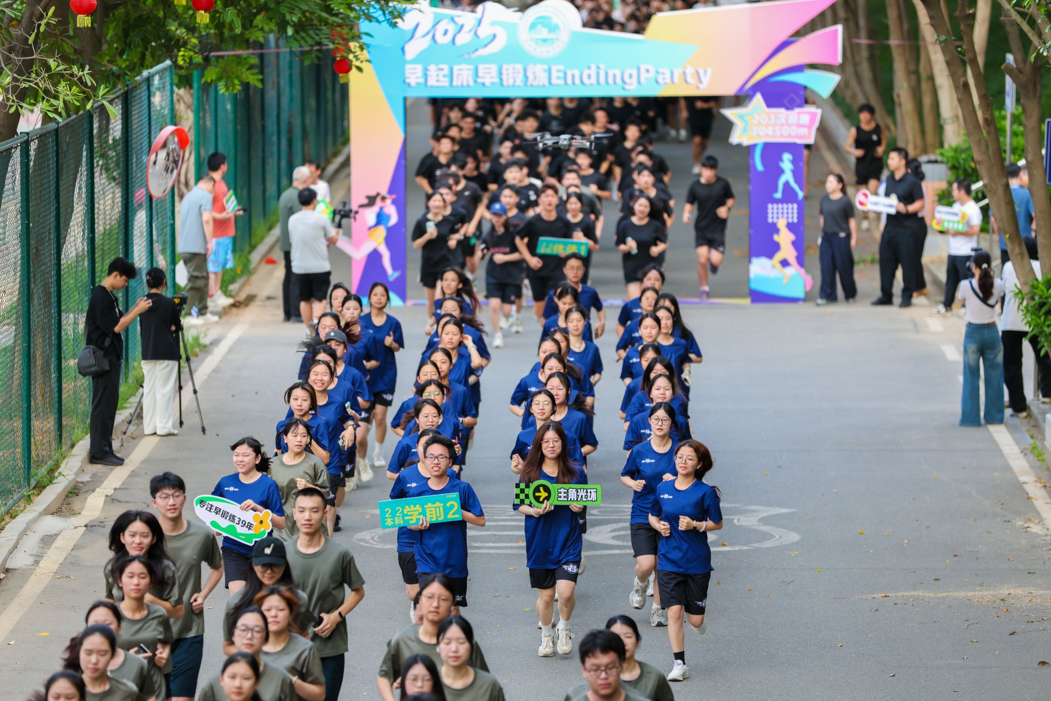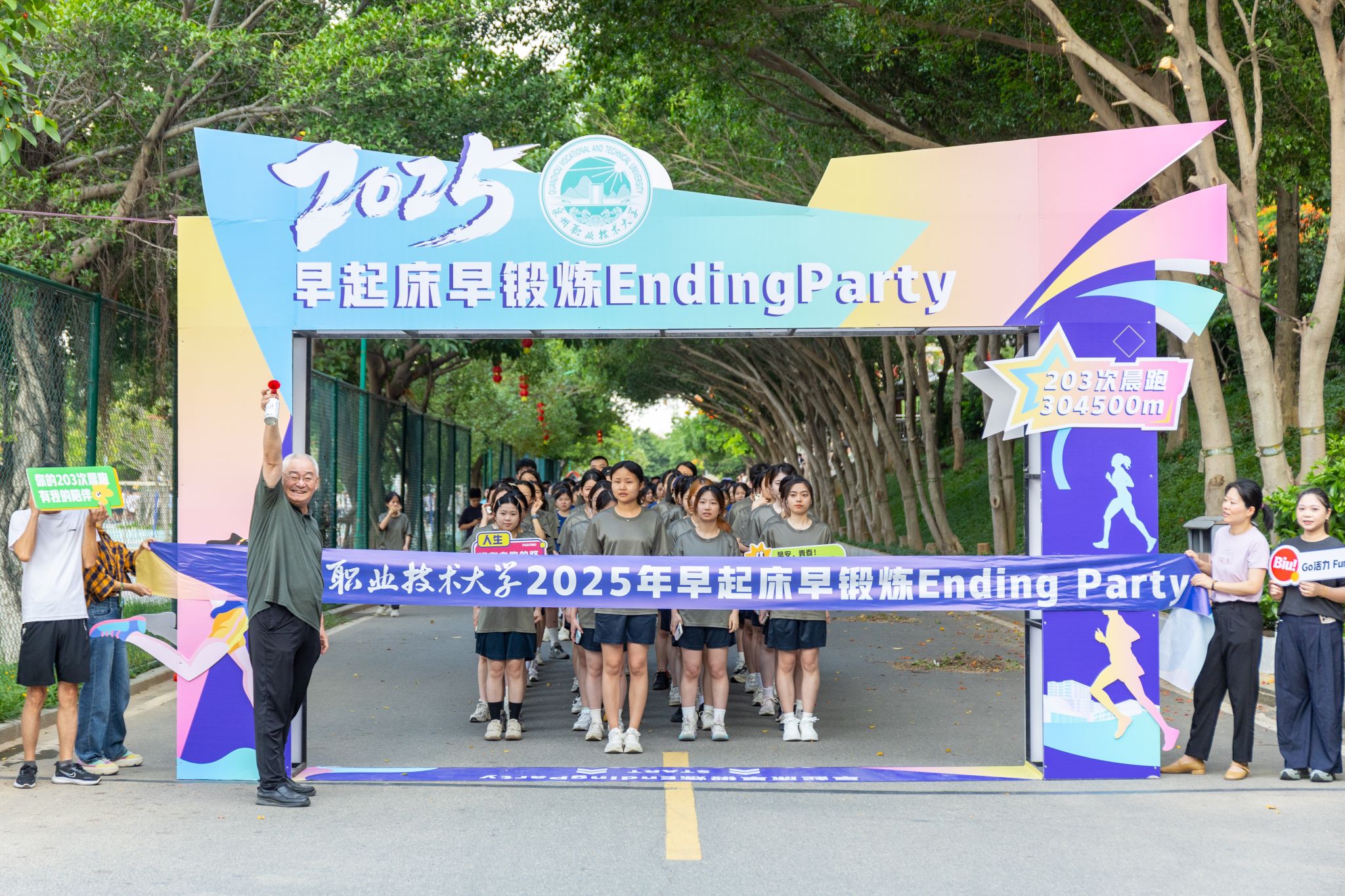 ▲ 教职工陪伴同学们一起参加早锻炼,或在终点迎接
