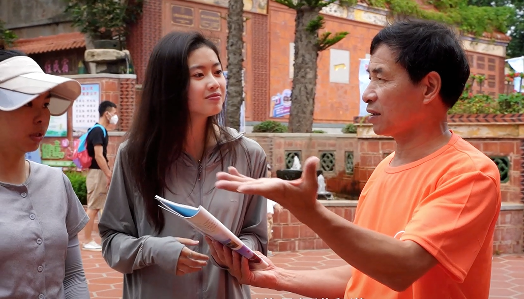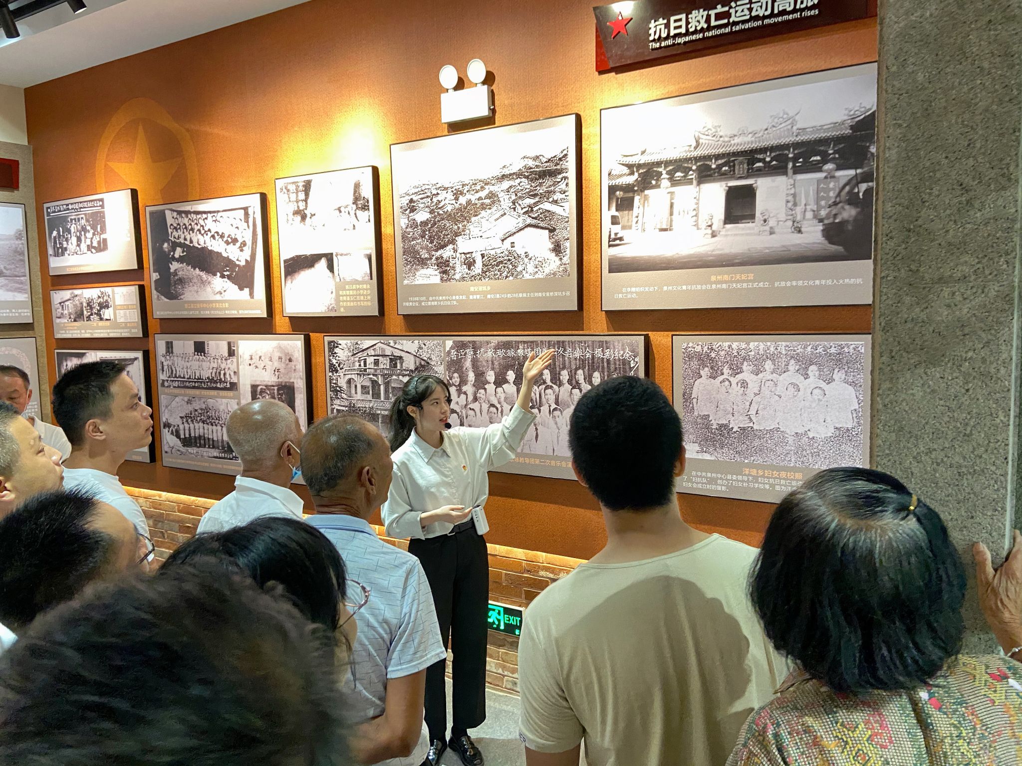 ▲ 宣讲团成员庄滢在坑边侨史馆为参观者讲解红侨文化