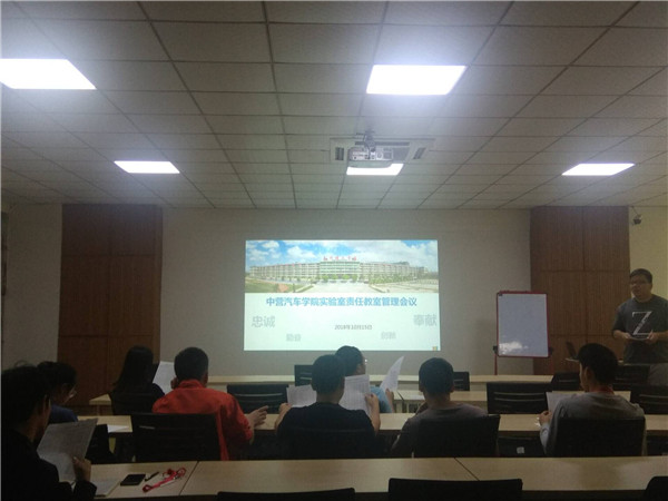 为了能更好的做好实验室管理服务教学,我院于10月15日下午17:00在主楼第二会议室召开了实验室管理会议,出席本次会议的有中营汽车学院院长陈其生、中营汽车学院书记欧阳春风、中营汽车学院实验室主任赖景湖、思政辅导员刘东毅以及各实验室负责人及各班级班主任。